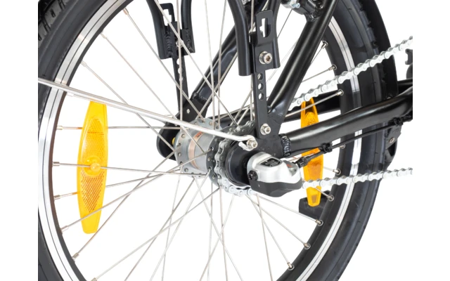 Das Allegro Compact SUV 3 Plus 374 eignet sich wunderbar für Pendler, Cityfahrer oder ganz einfach Faltrad-Begeisterte, die schnell von A nach B kommen wollen. Der Shengyi Frontnabenmotor unterstützt Ihre Tretleistung bis zu einer Geschwindigkeit von 25 km/h. Gespeist wird das System vom 374 Wh Akku, der am Gepäckträger angebracht ist. Hiermit können im Idealfall Reichweiten von bis zu 100 km realisiert werden. Ausgestattet ist das Allegro E-Faltrad mit einer Shimano Nexus 3-Gang Nabenschaltung, die komfortabel über den Shimano Drehgriffschalter bedient wird und optimal auf die Gegebenheiten der Stadt ausgelegt ist. Die mechanischen Alu-Felgenbremsen aus dem Hause Promax besitzen einen zuverlässigen Seilzug, der Sie stets kontrolliert verlangsamt und schnell zum Stehen bringt. Die praktische Rücktrittbremse sorgt zudem für ein erhöhtes Sicherheitsgefühl während der Fahrt.