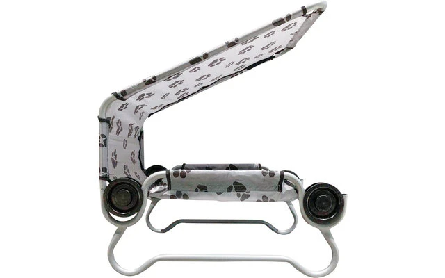 Dog-Bed – das mobile Hundebett mit Sonnenschutz für den treuen Begleiter. Mobil in der Tragetasche verstaut, leicht aufzubauen und zu transportieren. Pflegeleicht und hygienisch da einfach abwaschbar. Langlebig da aus robusten und stabilen Materialien gefertigt. Das clevere Disc-System gleicht Unebenheiten im Boden aus. Bis zu 91 kg belastbar, mit großzügiger Schlaffläche.