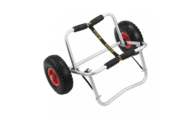 Das Boot liegt schonend auf weichen Gummiauflagen. Der Rahmen besteht aus stabilem nichtrostenden eloxiertem Aluminium. Die grossen und breiten Räder verhindern ein Einsinken im Sand. Die luftbereiften Räder lassen sich mittels Klappsplinten leicht abnehmen und sorgen für einen ruhigen Lauf.