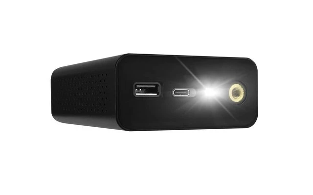 Mini Kompressor mit integrierter 800 mAh Lithium Batterie und zusätzlicher LED-Leuchte. Bestens geeignet für den mobilen Einsatz am Kfz, Motorräd, Fahrrad, Bällen und Luftspielzeug. Voreingestellte Profile. Mit integrierter Powerbank