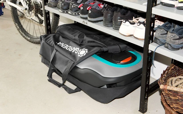 In der praktischen Aufbewahrungstasche können Mähroboter und Ladestation außerhalb der Mähsaison eingelagert werden. Zubehörteile und alle Unterlagen zum Gerät finden in den zusätzlich aufgesetzten Taschen Platz und können ganzjährig staubgeschützt und geordnet aufbewahrt werden. Passend für alle Gardena Mähroboter.