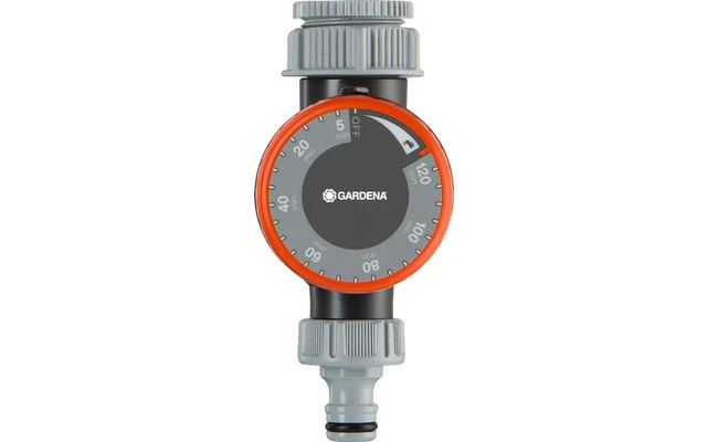 Die Gardena Bewässerungsuhr schaltet die Bewässerung im Garten automatisch ab. Das Gerät wird einfach an den Wasserhahn angeschlossen und lässt sich leicht über das große Drehelement bedienen. Der Betrieb eines Regners oder einer Tropfbewässerung kann manuell gestartet werden. Die Bewässerungsdauer, zwischen 5 und 120 Minuten, wird an der Bewässerungsuhr eingestellt. Nach Ablauf der voreingestellten Zeit stoppt der Wasserfluss automatisch. Eine Batterie ist für den Betrieb nicht notwendig.