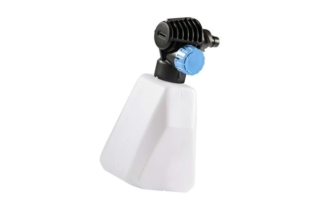 Die MultiJet als Schaumsprüher einsetzen- dank des praktischen Wechselmechanismus lässt sich der Aufsatz mit nur wenigen Handgriffen am Gerät montieren.