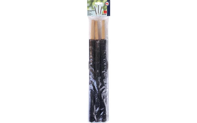 Bestens geeignet für Nachtwanderungen oder auch für ein schönes Ambiente im heimischen Garten, sowie auf dem Campingplatz! Die klassische Wachsfackel mit Holzgriff. Höhe 50 cm. Brenndauer ca. 45 Minuten. 3er Pack. Integrierter Wachsschutz.
