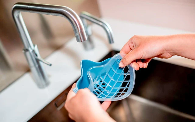Die Koziol »HI Gesichtsmaske reduziert den Ausstoß von Partikeln aus der Atemluft des Trägers an die Umgebung und reduziert somit die Ansteckungsgefahr für andere. Gleichzeitig schützt sie den Träger vor unbedachten Berührungen der Lippen, der Nase und des Gesichts, und damit der Selbstinfizierung über die Hände. Die Maske besteht aus einem medizinisch geprüften, flexiblen Kunststoff und kann mit dem migelierferten Gummiband auf jede Kopfgröße individuell eingestellt werden. Ein Filter aus Vlies ist im Lieferumfang enthalten. Die Maske wird mit Seife gereinigt (auch spülmaschinengeeignet). Das Filterelement wird ausgetauscht.