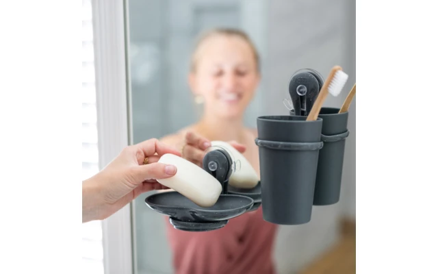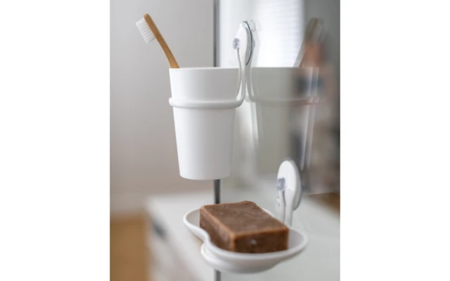 Ob am Waschbecken oder in der Dusche: LOOP macht immer eine gute Figur. Auch die Reinigung ist kinderleicht: die ovale Seifenschale ist in dem Halterungsring nur eingehängt und kann mühelos herausgenommen werden. Zusammen mit dem LOOP Zahnputzbecher einfach das perfekte Duo für jedes Bad.