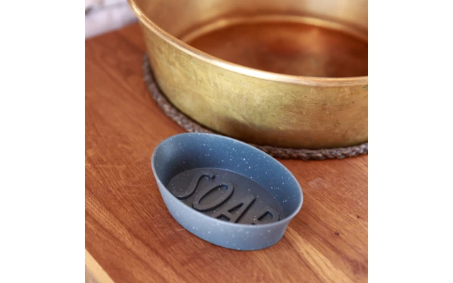 Die SOAP Seifenschale setzt jedem duftenden Schaumstück ein expressives Design-Highlight auf – auf den erhabenen Lettern kann es wieder trocknen und bleibt länger einsatzfähig. Die große Auflagefläche der Schale sorgt auf glatten Waschbeckenrändern für sicheren Stand. Und über das Bad und WC hinaus bewährt sich SOAP auch als originelle Ablage für Schmuck, Kosmetik oder Wattepads. SOAP besteht zu 100% aus recyceltem Kunststoff sowie Zellulose und spart damit mehr als zwei Drittel CO2 im Vergleich zu neuen Materialien ein.