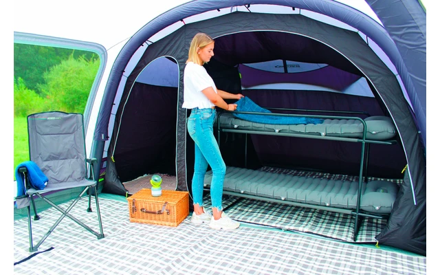 Dank des Schnellverbindungssystems können zwei dieser aufblasbaren Matratzen mithilfe von Clips miteinander verbunden werden, wodurch ein großes Doppelbett entsteht. Dieses Campingzubehör ist ideal für die Verwendung in Verbindung mit unserem Premium-Etagenbett.