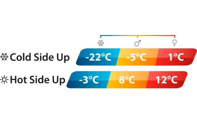 Temperaturlimit Männer: -5 cold side up/ 8 warm side up