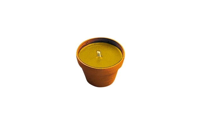 Praktische Partykerzen im Tontopf mit Citronella-Wachs zur Mückenabwehr.