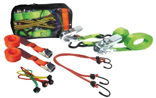Für eine fachgerechte Ladungssicherung gemäß UVV. 10-teiliges Set inklusive Transporttasche.
