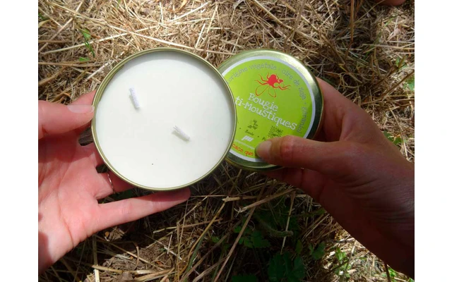 Die Kerze von Pharmavoyage ist zu 100 % pflanzlich und enthält Sojawachs und Geraniol. In einem Labor getestet, ist diese Kerze fünfmal wirksamer als eine Zitronengraskerze und bietet 20 Stunden Schutz vor Mücken. Im Gegensatz zu Paraffinkerzen gibt Sojawachs sehr wenig Ruß ab. Kompakt und leicht ist diese Kerze der ideale Mückenschutz für die Familie oder Gruppen: Reisen, Picknick, Camping, Wandern oder einfach zu Hause!