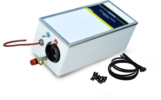 - erwärmt das Wasser über die warme Luft der Standheizung oder per Heizstab (200W)