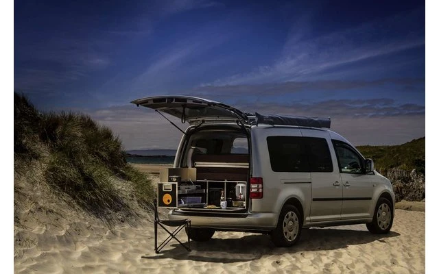 Das komplette System ist eine kompakte Einheit. So kann man nichts vergessen und der Einbau ist in einer Minute erledigt. Die Küche ist in wenigen Sekunden einsatzbereit und das bequeme Bett mit einem Handgriff ausgeklappt. So kann man in vollen Zügen den Urlaub genießen und entspannt flexibel reisen.