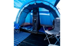 Das Karuna 6-Mann-Zelt bietet eine beeindruckende Menge an Wohnraum mit Stehhöhe und die Möglichkeit von zwei Schlafzimmern. Entworfen mit Komfort für längere Campingausflüge gibt es einen geräumigen zentralen Bereich für alle Ihre Möbel und Accessoires sowie die Möglichkeit eine Seitenveranda hinzuzufügen, um den Platzbedarf noch weiter zu vergrößern.