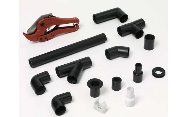 | Ausführung | Reduzierstück, Übergangsstück auf 20mm, Abwasserrohr 28×1,5mm, Übergangsstück auf 19mm, Muffe, Winkel 45 Grad, Übergangsstück für Duschwanne |