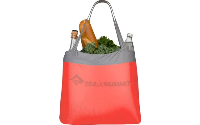 - Hergestellt aus leichten silikonisierten 15D-Nylon, bietet die Einkaufstasche ein großzügiges Volumen von 25 Litern und hält dank verstärkter Nähte Lasten bis zu 20 kg.