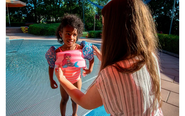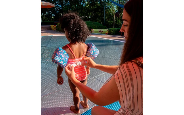 Einfache Anpassung mittels Steckverschluss am Rücken, der von den Kindern nicht geöffnet werden kann. Hervorragende Bewegungsfreiheit beim Schwimmen und Tollen. Angenehmer Schnitt und freches Design. Der Puddle Jumper ist besonders leicht und bietet somit einen hohen Tragekomfort.