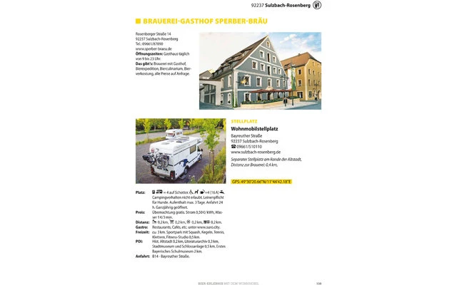 - Entfernungsangabe zu Wohnmobilstellplätzen, Brauereien mit eigenem Stellplatz erhalten ein Signet
