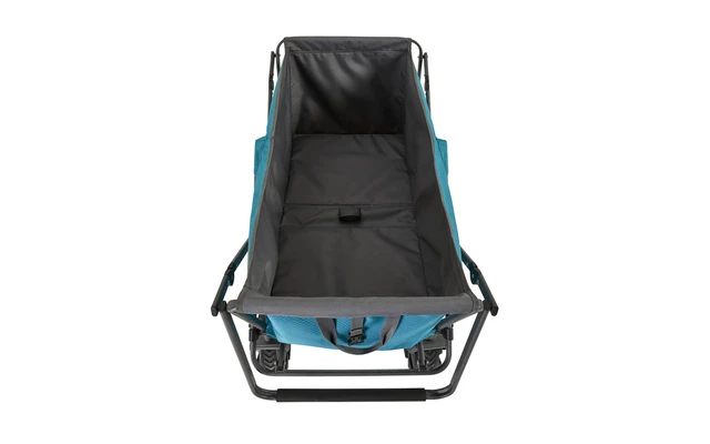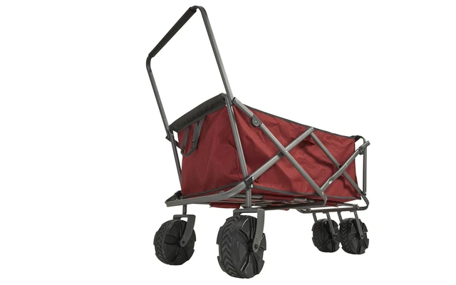 Durch den weichen, langen Griff lässt sich der Uquip Buddy gut ziehen und lenken. Unterstützt wird das Ganze durch die großen, robusten Geländeräder. Durch den Faltmechanismus lässt er sich weiterhin einfach Kofferraum eines Autos verstauen.