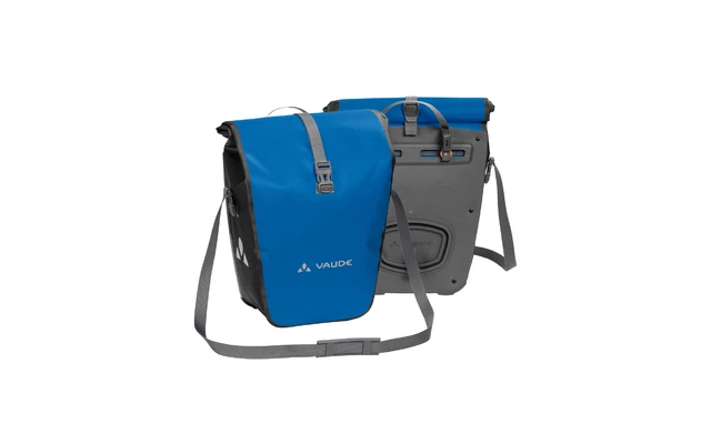 Auf in die große, weite Welt! Die zwei wasserdichten Hinterradtaschen werden aus robustem, PVC-freiem Planenmaterial klimaneutral am deutschen VAUDE-Standort in der Nähe des Bodensees hergestellt und würden gerne auf große Reisen gehen. Sie lassen sich durch den Wickelverschluss auf individuelle Größen bringen und absolut dicht verschließen.