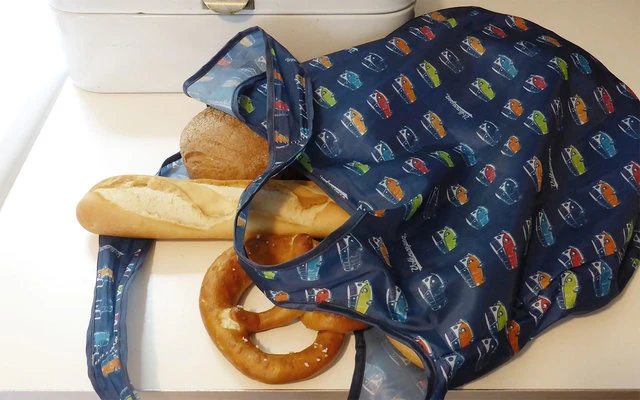 Faltbare Tasche für deine Einkäufe oder um andere Dinge zu transportieren. Der Einkaufsbeutel kommt in einer kleinen Tasche mit VW Bulli Front und kann in ihr super schnell verstaut werden – somit immer platzsparend und griffbereit aufzubewahren. Besonders Praktisch: Durch die langen Henkel lässt sich auch die gefüllte Tasche super tragen. Die Einkaufstasche hat ein Volumen von ca. 15 l und sollte maximal mit einem Gewicht von ca. 15 kg belastet werden.